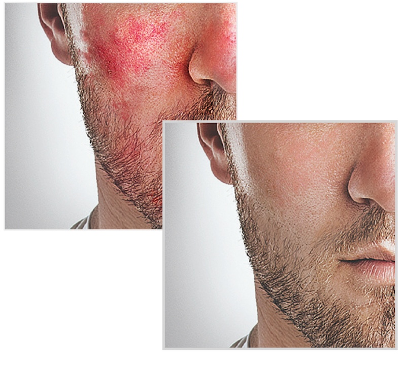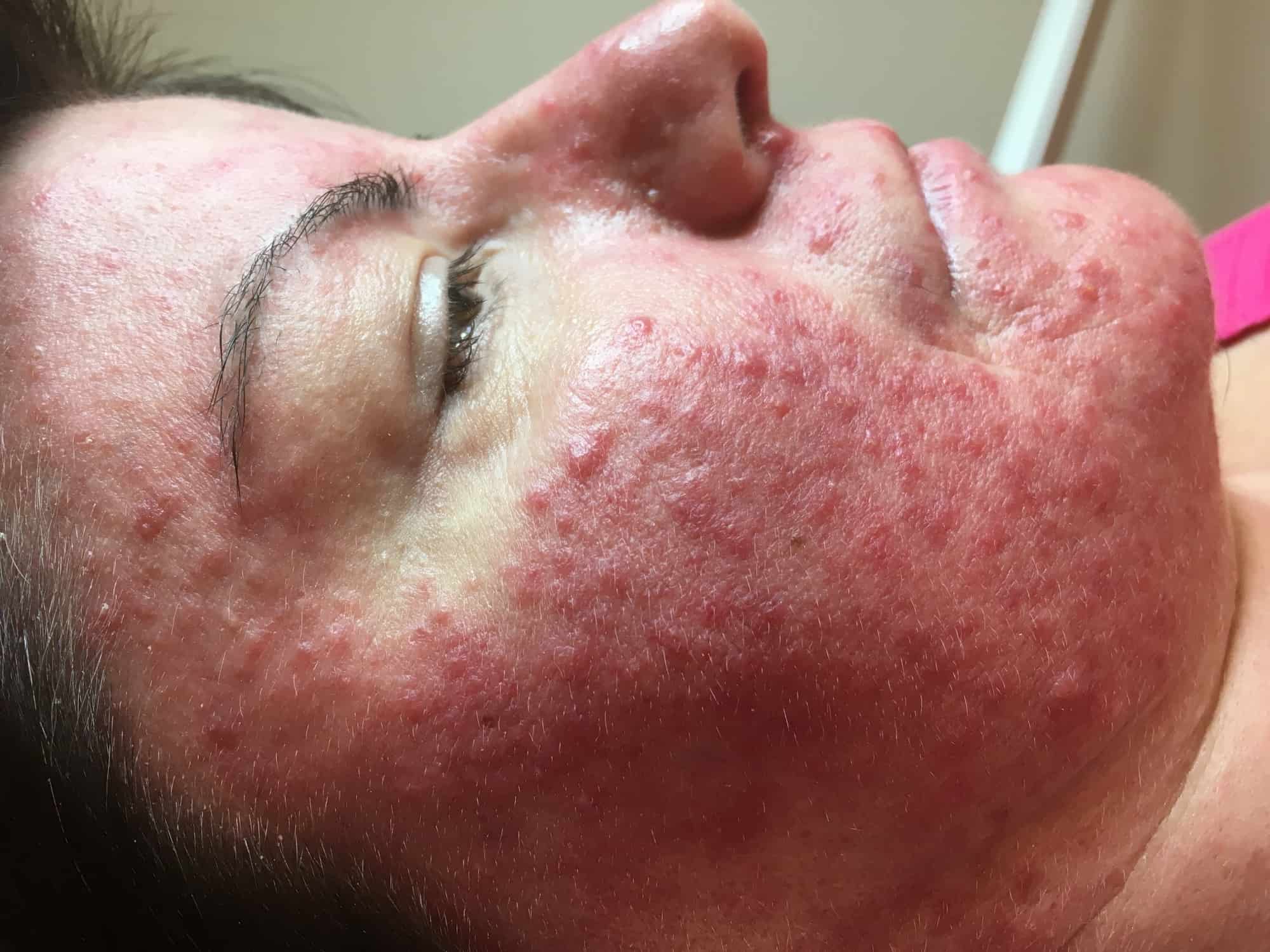 A legtöbb eset sajnos komplikáltabb, mert hosszú ideje tartanak a tünetek. Évek óta fennálló bőrtünet már érinti a bőr mélyebb rétegeit és a kötőszöveti réteget is. Ilyenkor is a bőr akut és krónikus gyulladása miatt vörös a bőr, de az is előfordulhat, hogy már az érrendszert és a kötőszöveti rendszert is terheli a gyulladás, és az erek láthatóvá válnak az arcon.
