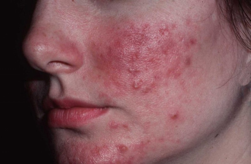 Irritációs rosacea az arcon